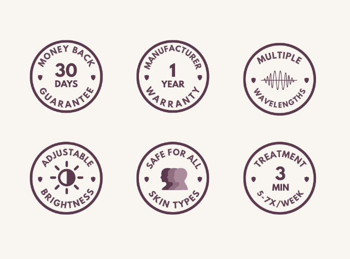 R1 E uses clinically tested wavelengths that are safe for the eye area when used as directed. That said, everyone’s light sensitivity is different. That’s why we include 2 soft silicone eye shields with every device. While most people use the mask comfortably without them, the shields are there if you ever feel the light is too bright — especially in low-light settings or during your first few sessions.